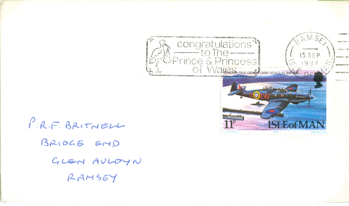 A1022. CONGRATULATIONS TO PRINCE & PRINCESS OF WALES (Birth of Prince Harry) fine strike on cover 15.9.84. £3.00
