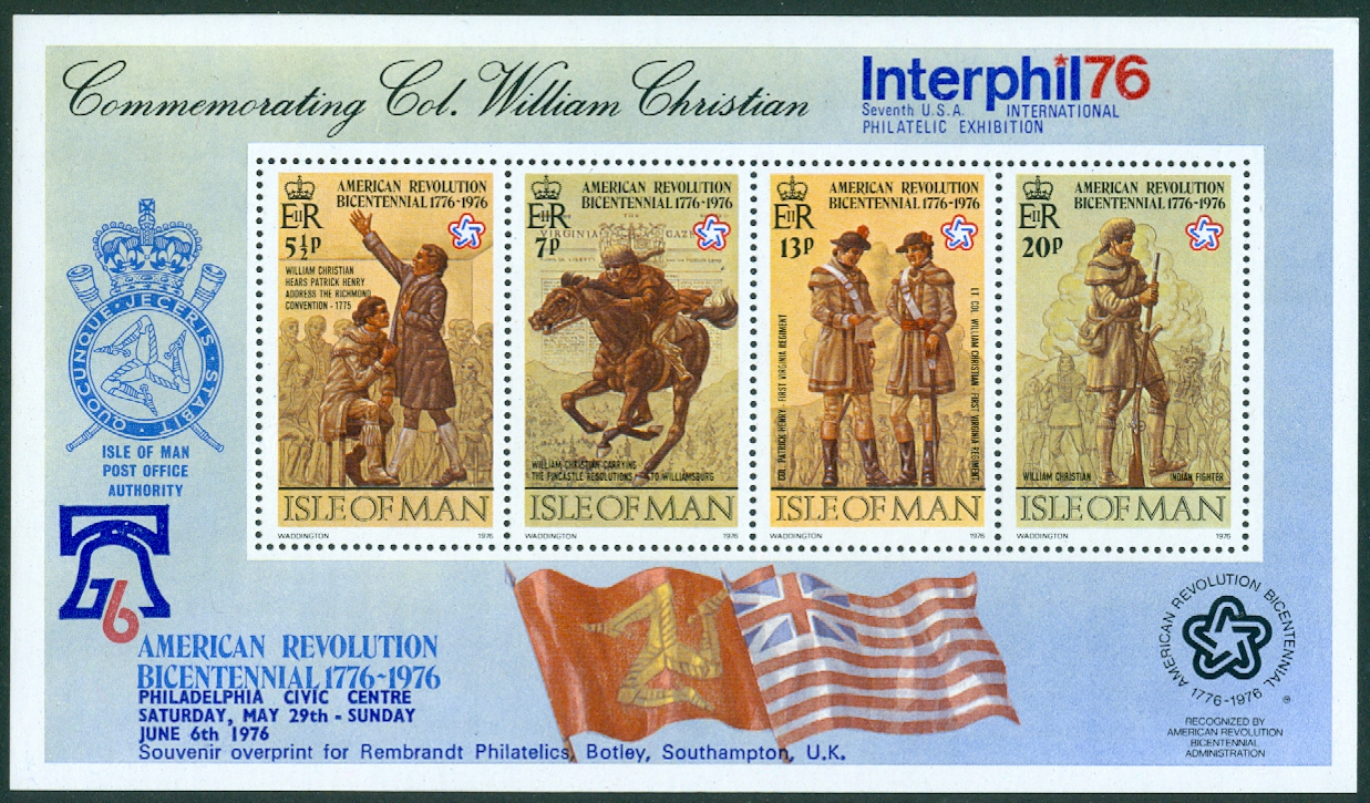 A1802A. Interphil 76 overprint on Bicentennial sheet scarce - the first exhibition o/p on ms. £3.50