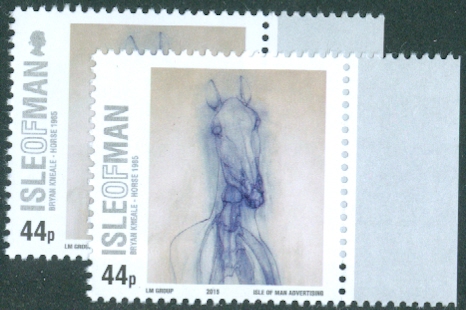 A1814. 2015 Bryan Kneale set SG2043-52 with ERROR 'Queen's Head omitted from one value' (SG 2047 Horse). With normal set for comparison. £15.00