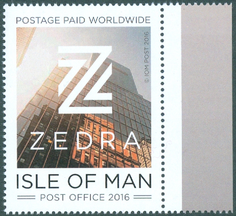 The stamp was produced for a special mailing by corporate services provider Zedra (based in Douglas, IoM). The full story is on a folder which comes with this copy of the stamp, which has a photocopy of the full sheet and identifies where on the sheet this stamp was located. The stamp was valid only on a special mailing made by Zedra in 2016.
