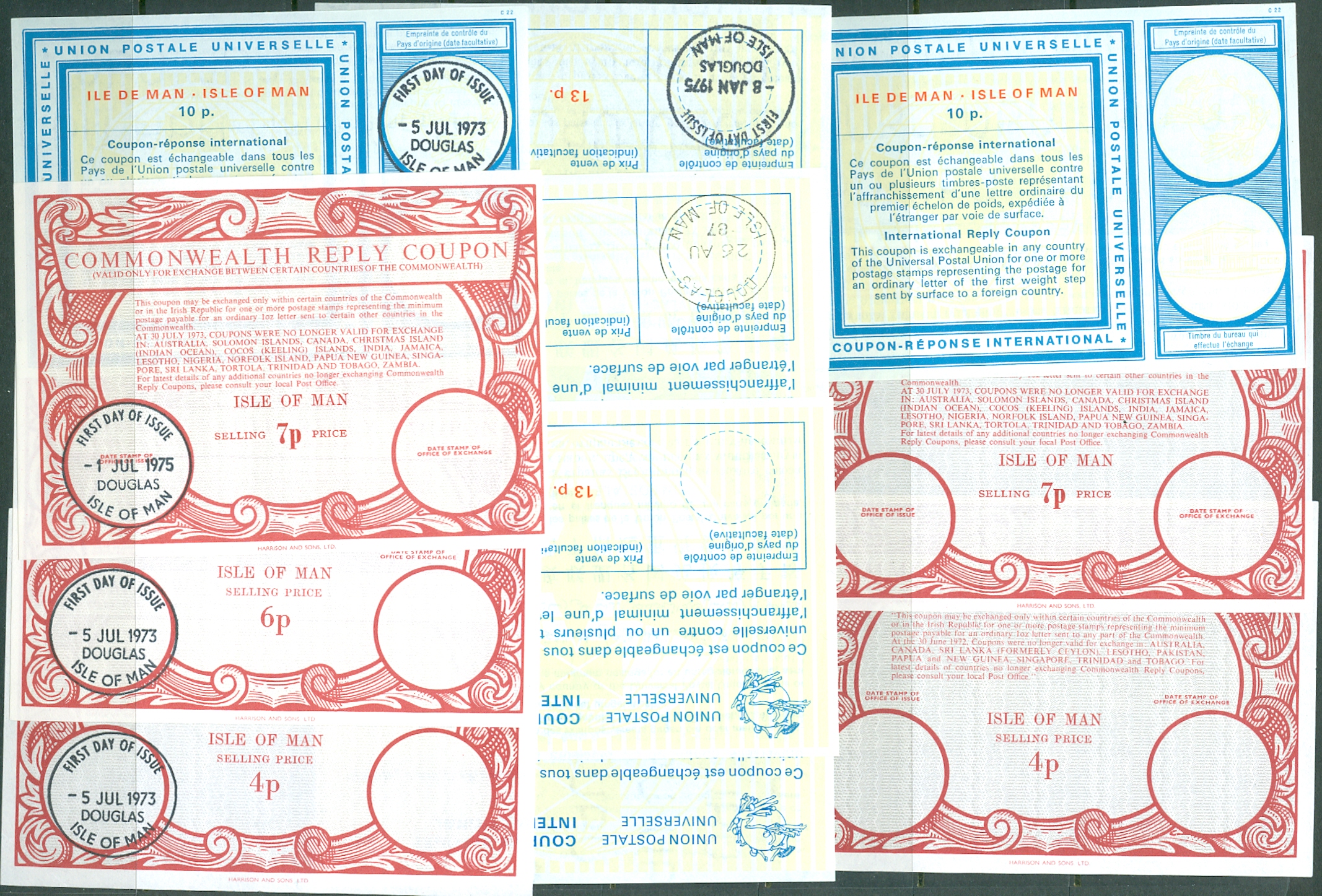 A1831. REPLY COUPONS: 11 coupons, some with issuing office cds. Scarce range of a no-longer issued postal item. £5.50